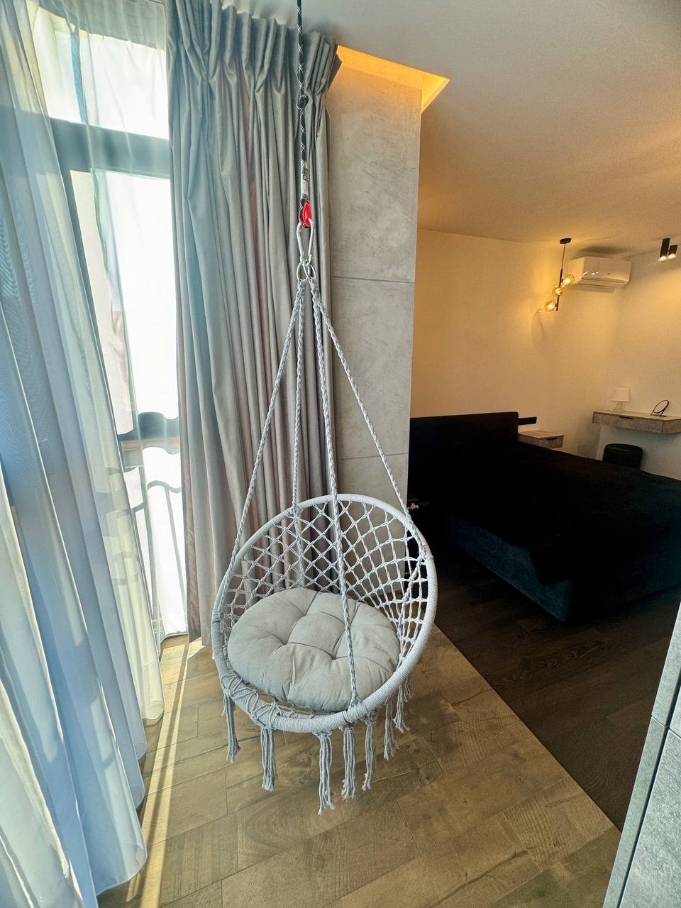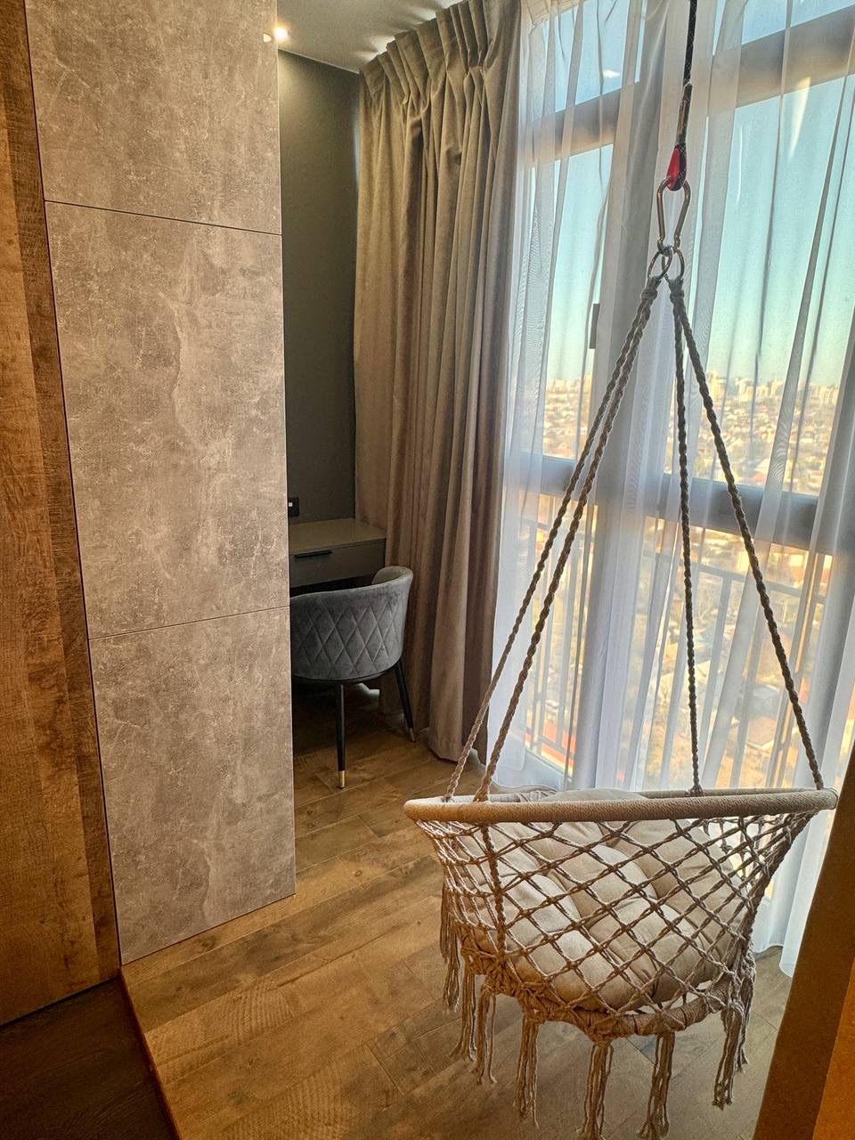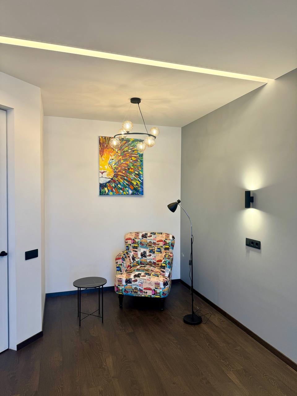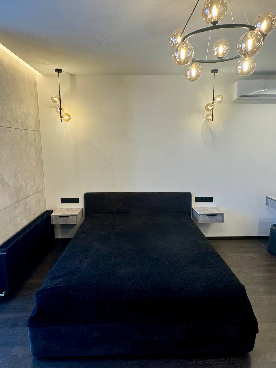 Планування: велика спальна кімната з відкритим балконом (міні кабінет чи зона відпочинку); простора кухня із окремою зоною вітальні; містка гардеробна; санвузол та коридор.