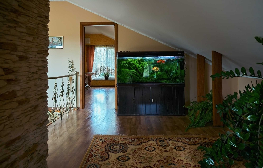 Другий поверх: гвинтові сходи з дубовими дерев'яними сходами, хол кабінет з виходом на балкон, санвузол, дві спальні зі своїми вбудованими шафами, кондиціонер.