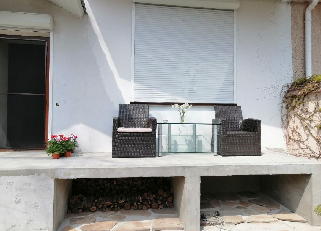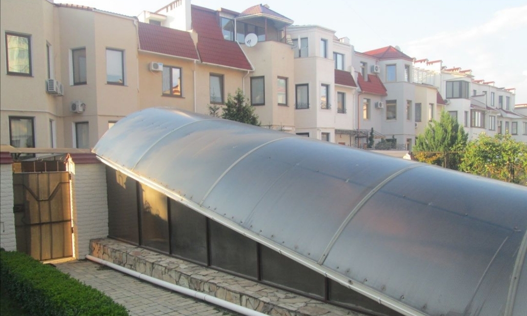 Перед в'їздом в гараж є критий в'їзд, в якому розміщується дві машини при необхідності. Одна в гаражі та дві машини при в'їзді критому та закрита ролетом.