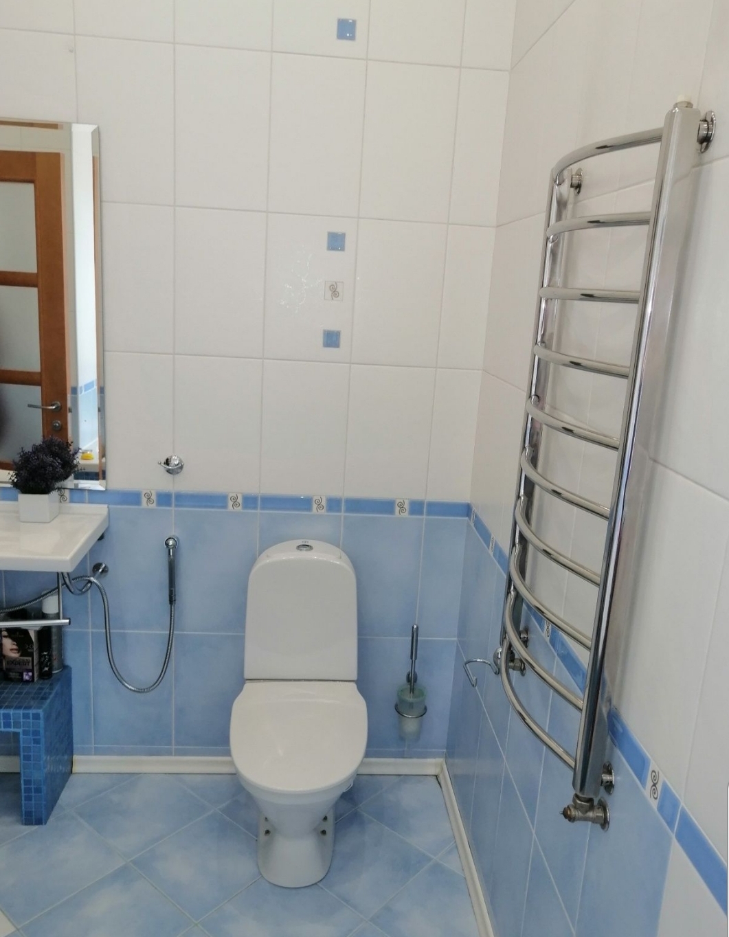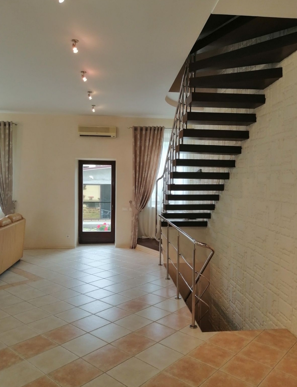 У цокольному поверсі - гараж, побутова кімната, котельня, лазня (топиться дровами), гостьовий санвузол з душовою, хол.