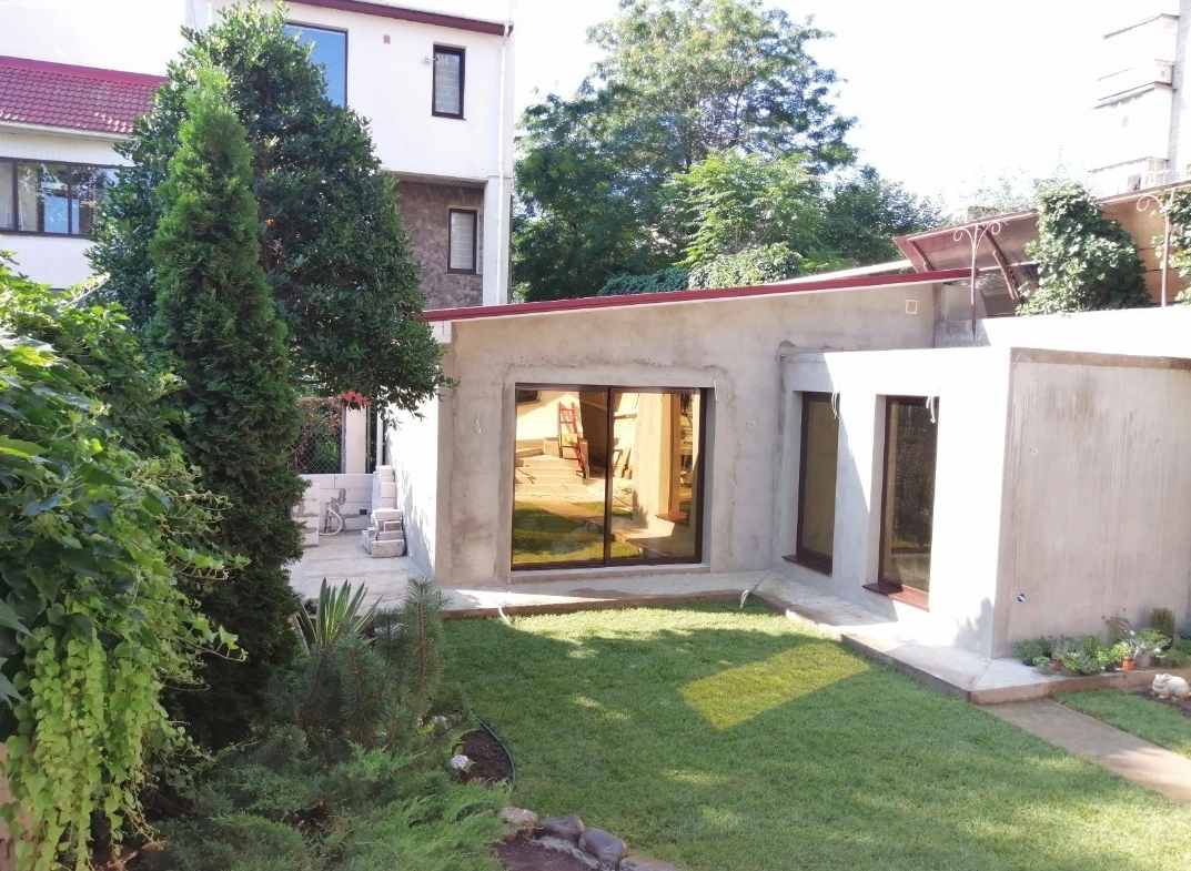 На ділянці є літній будиночок площею 35 кв.м. (будиночок побудований з газоблоку, товщина стіни 30 см, всередині та зовні відштукатурен, дах металочерепиця, дах утеплений мін. стяжка підлоги чорнова, зроблено чернові роботи зі встановлення сантехніки, водопроводу, каналізації). Вікна та розсувні двері з алюмінію та тоновані.